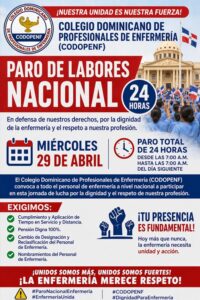 SANTO DOMINGO, República Dominicana – El Colegio Dominicano de Enfermería (CODOPENF), la Dirección Nacional de Enfermería y la Dirección de